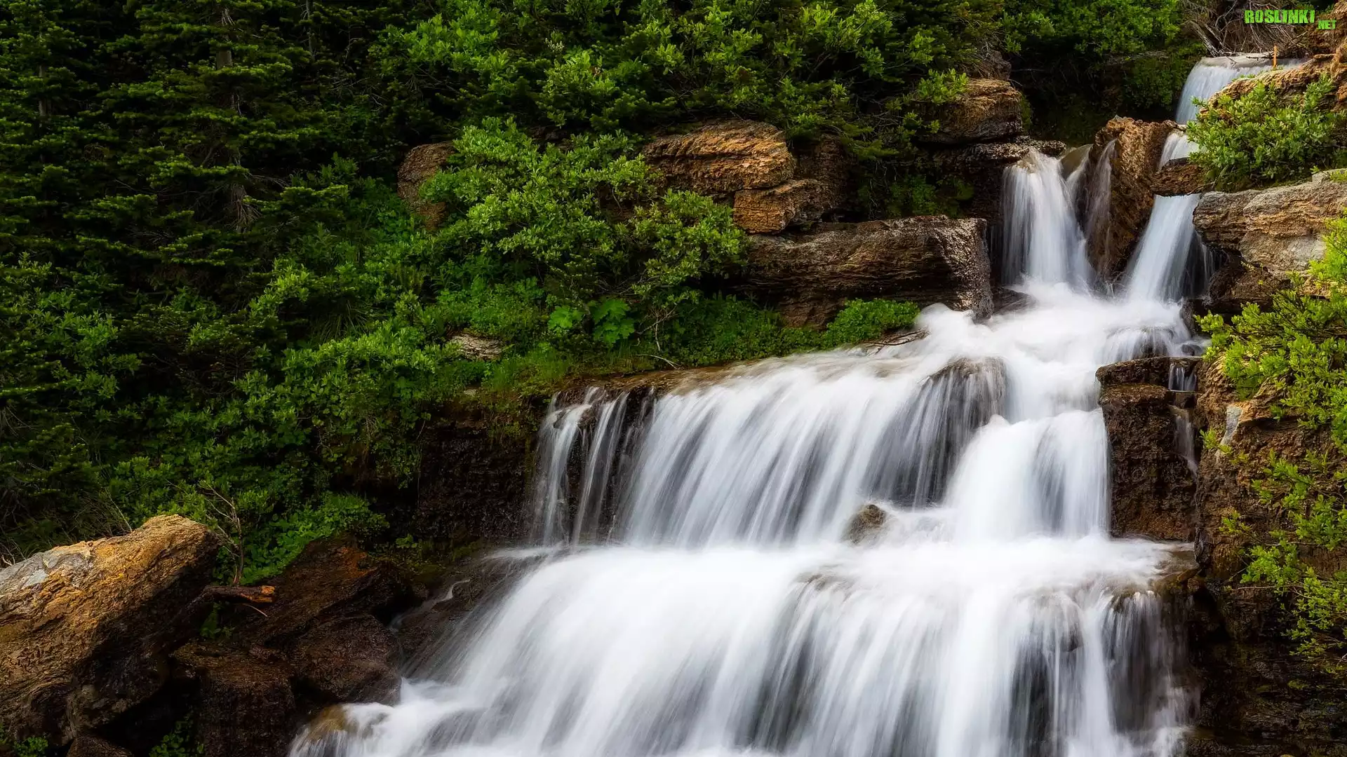 Rośliny: Wodospad, Skały, Zielone, Rośliny