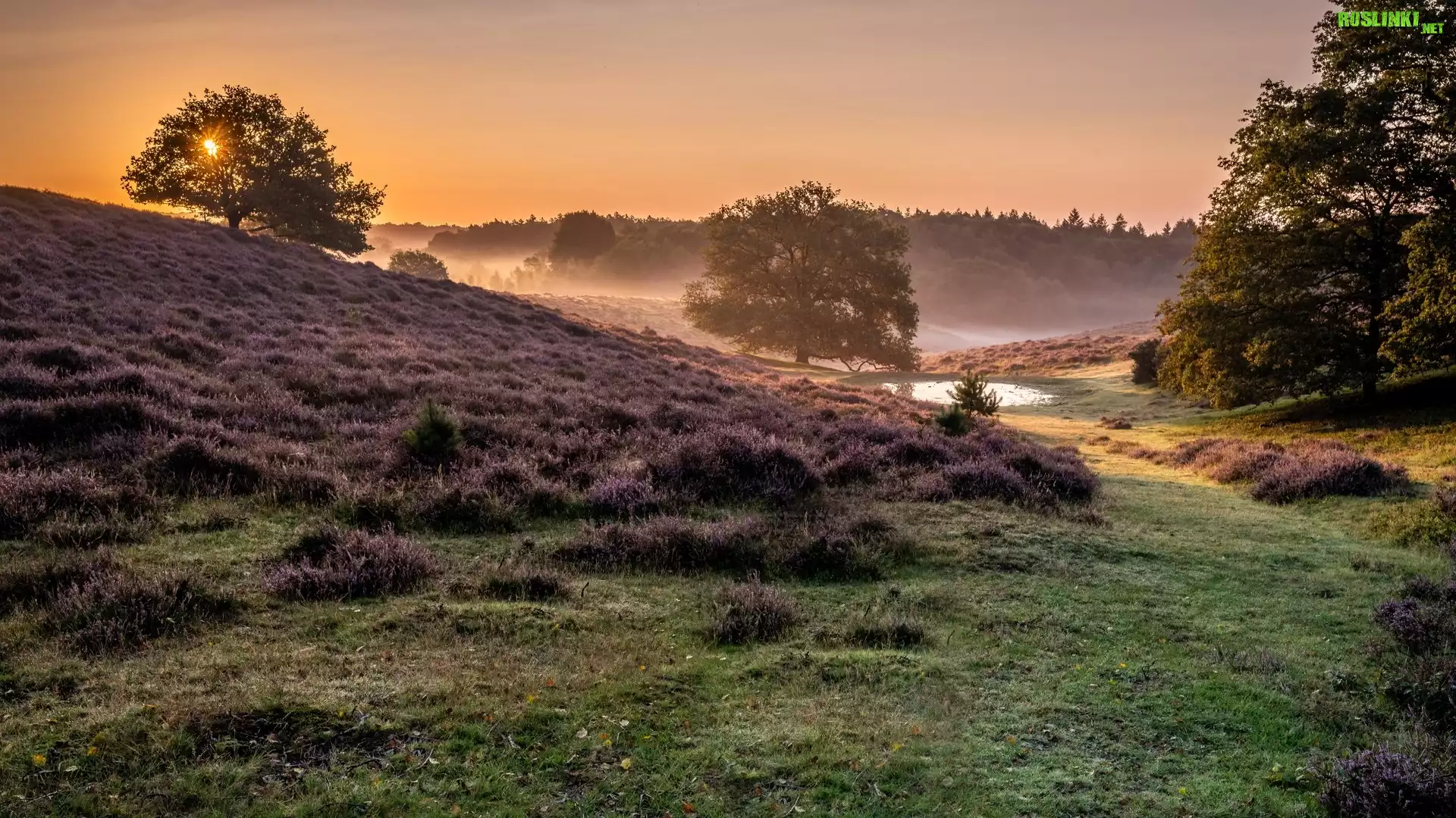 Rośliny: Pole, Wrzosowisko, Las, Drzewa, Mgła