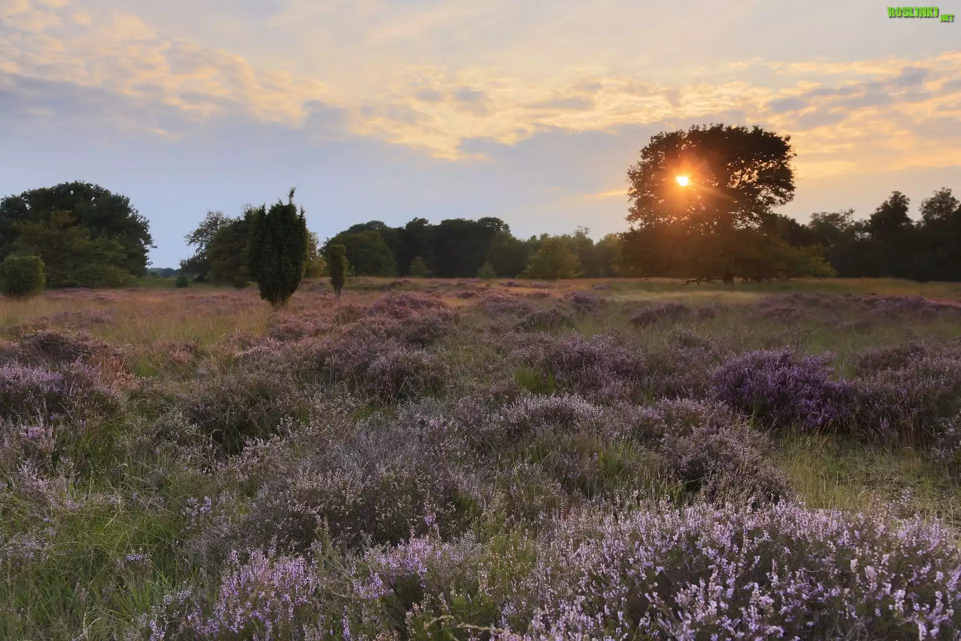 Rośliny: Wrzosowisko, Zachód, Słońca, Drzewa