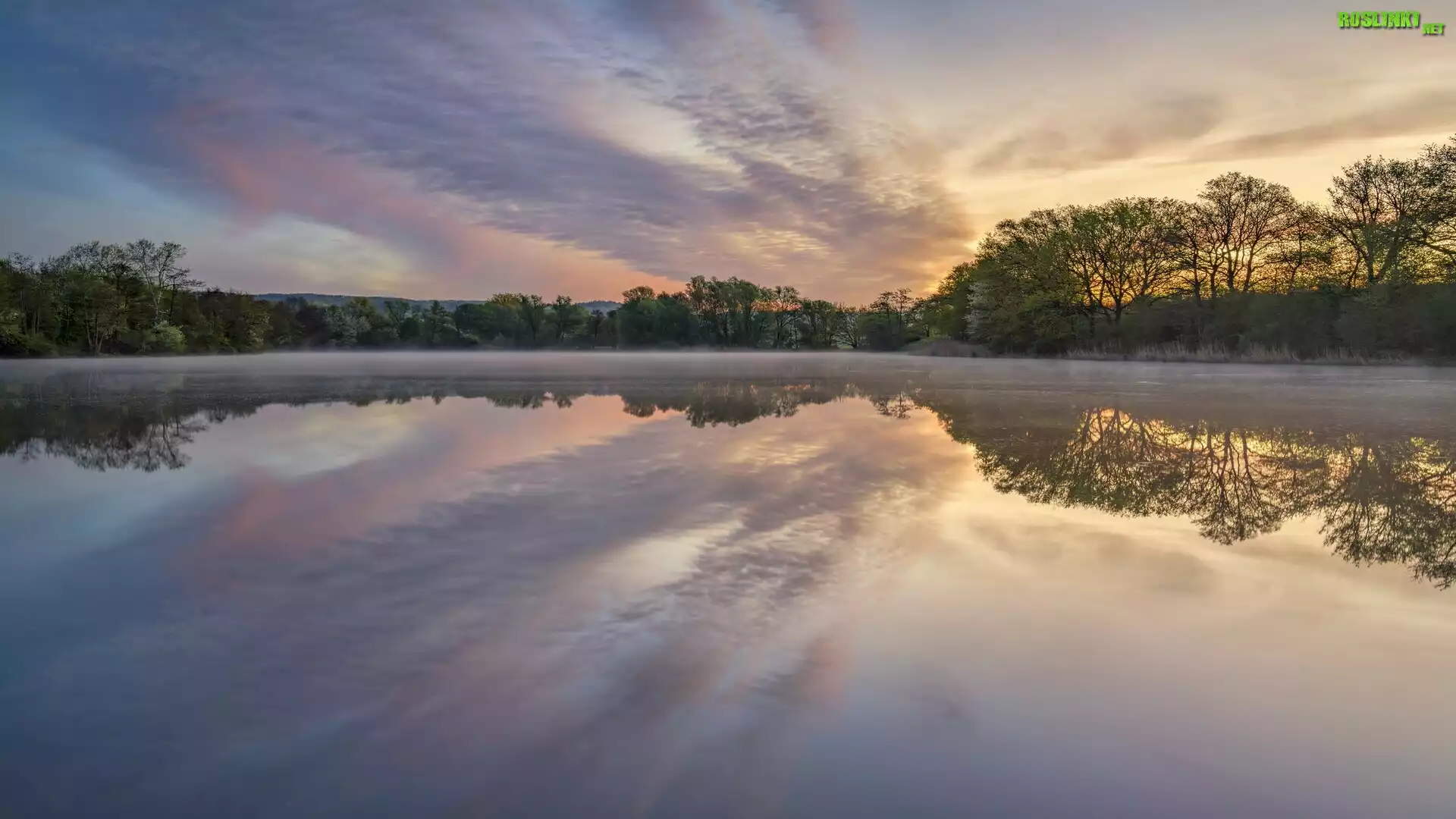 Rośliny: Wschód słońca, Drzewa, Las, Jezioro Sterenbachsee, Dolina Wittlicha, Niemcy