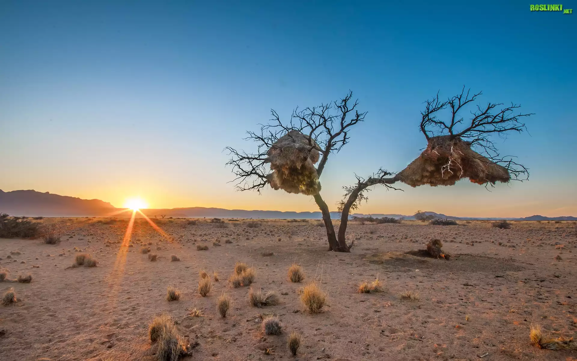 Rośliny: Wschód słońca, Góry, Drzewo