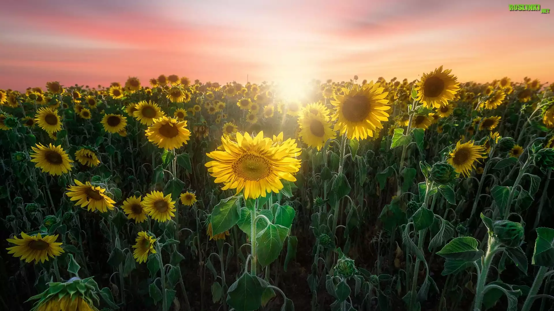 Rośliny: Wschód słońca, Kwiaty, Słoneczniki