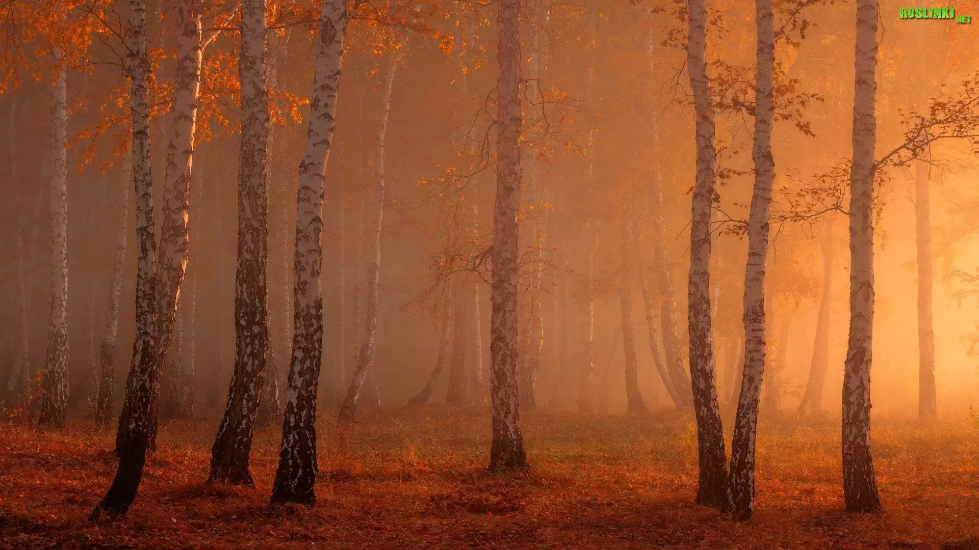 Rośliny: Wschód, Słońca, Brzozowy, Las, Mgła
