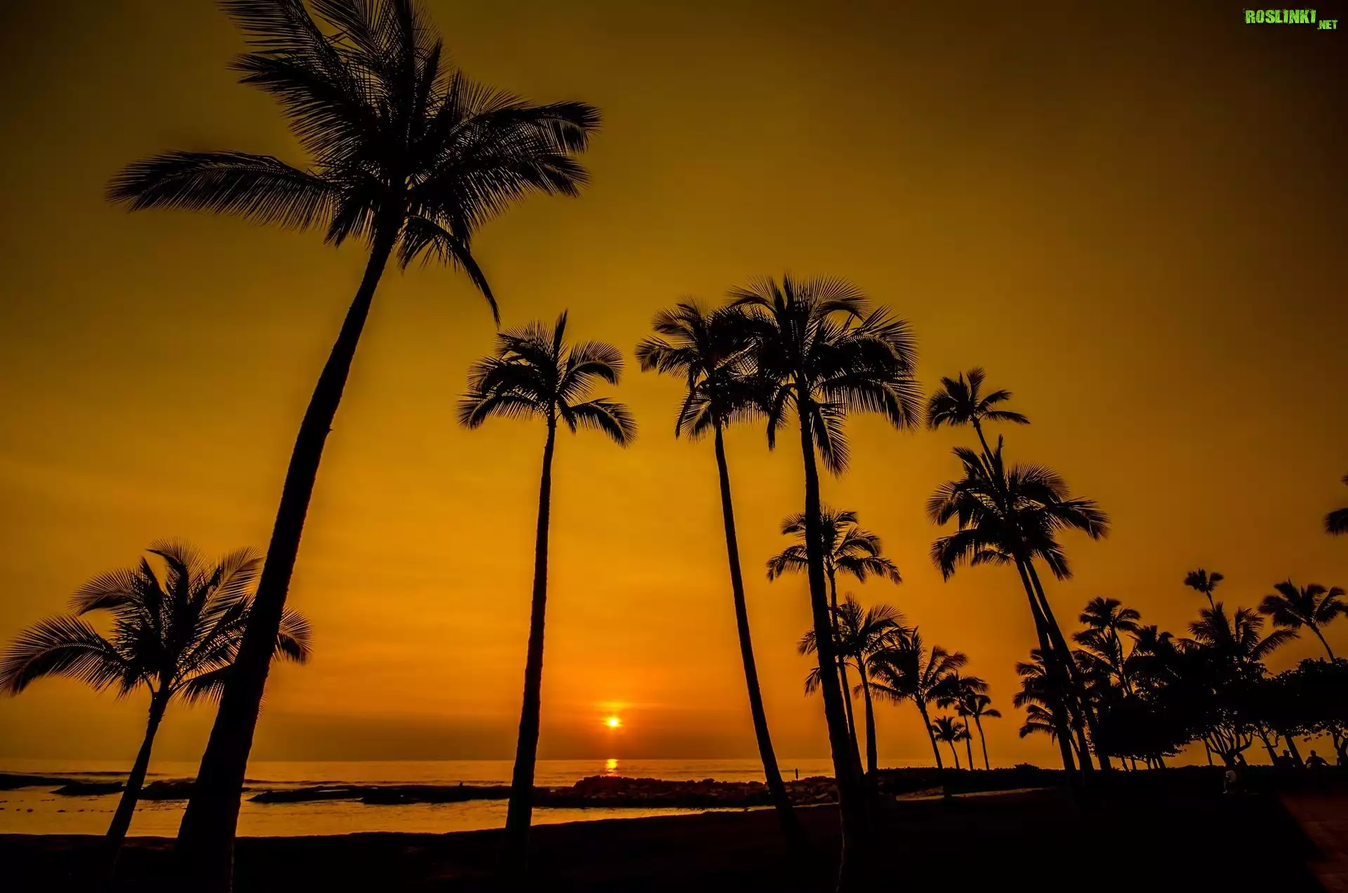 Rośliny: Wybrzeze, Zachod , Slonca, Niebo, Palmy