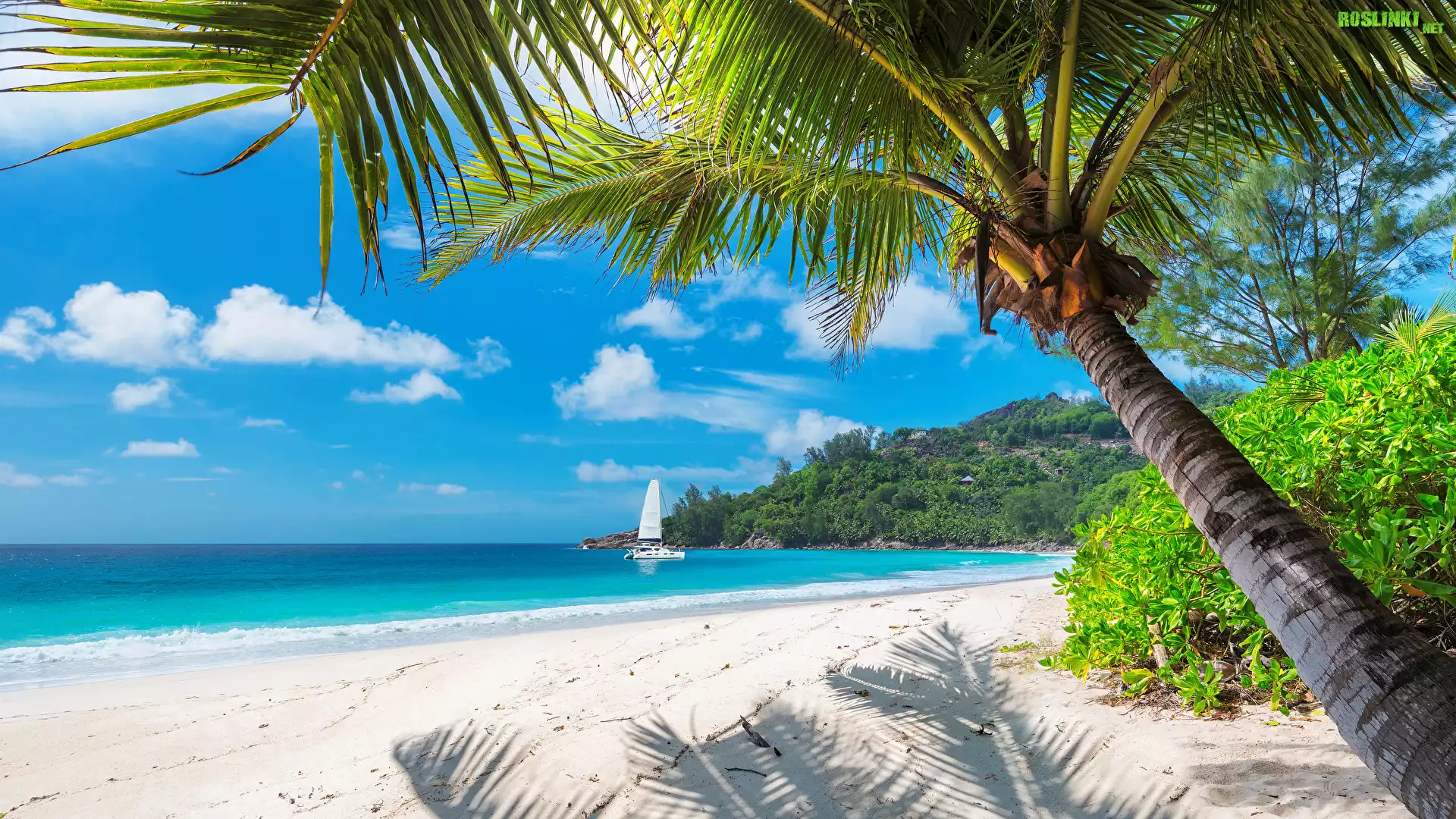 Rośliny: Tropiki, Wybrzeże, Plaża, Morze, Palmy, Roślinność, Żaglówka