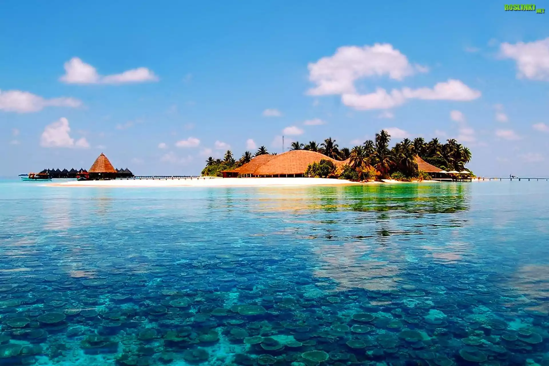 Rośliny: Wyspa, Domy, Palmy, Morze, Tropiki