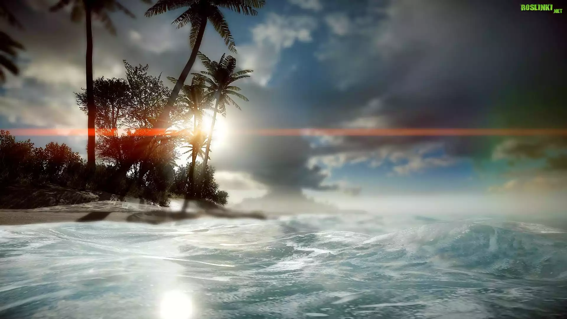 Rośliny: Ocean, Wyspa, Palmy, Mgła, Świt, Wschód Słońca
