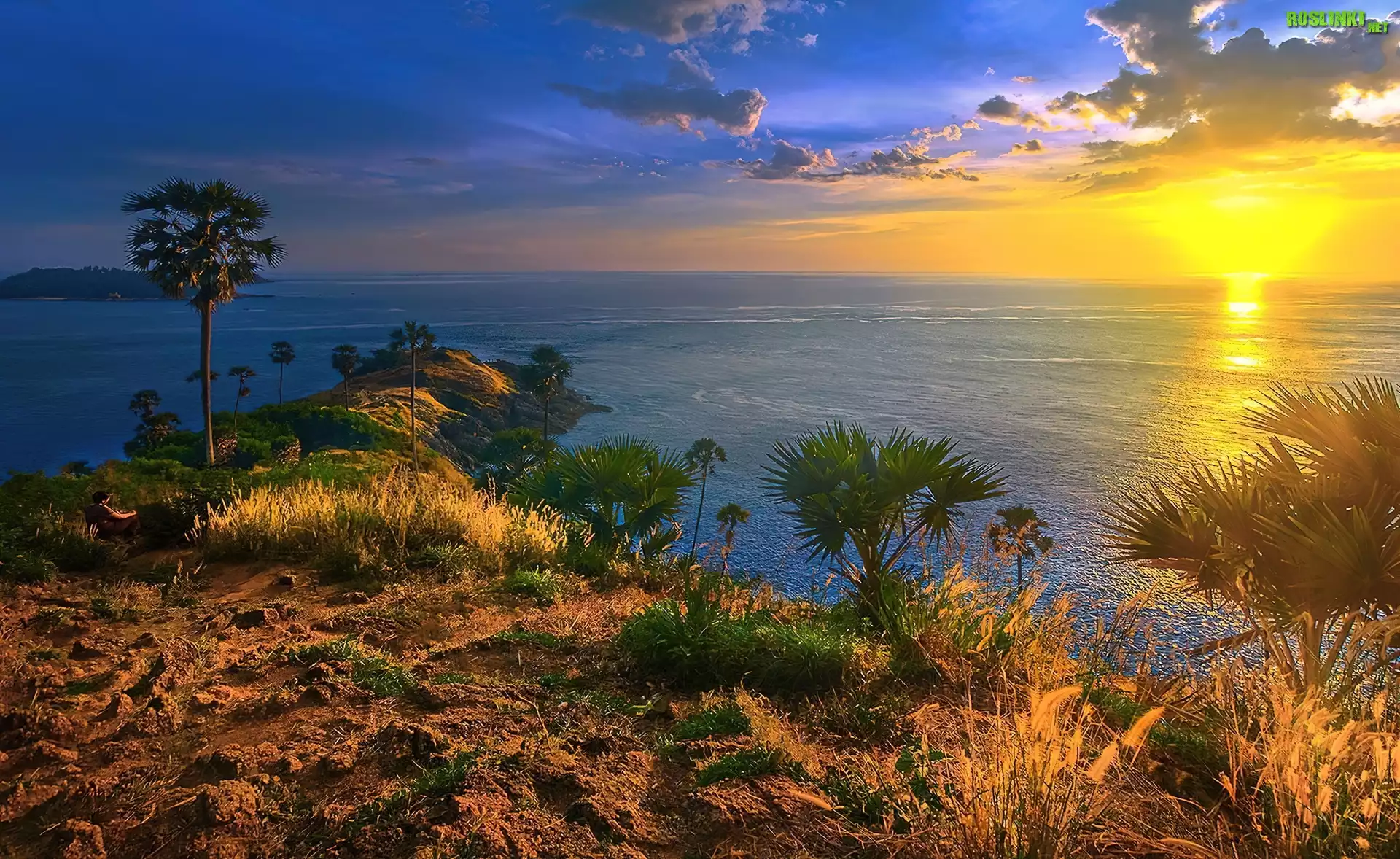 Tajlandia, Wyspa, Phuket, Zachód Słońca, Palmy, Rośliny