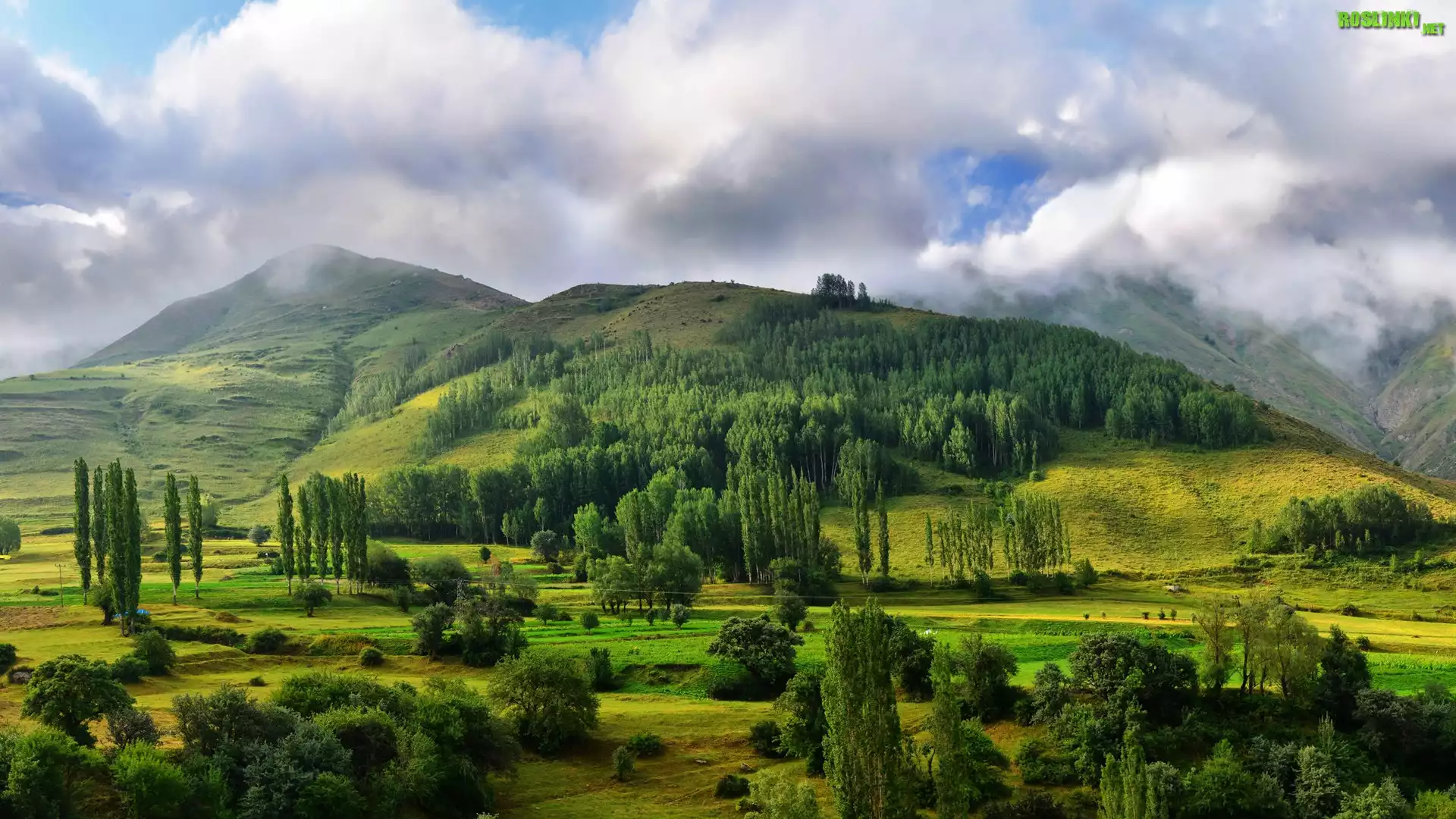 Rośliny: Wzgórza, Drzewa, Chmury, Mgła