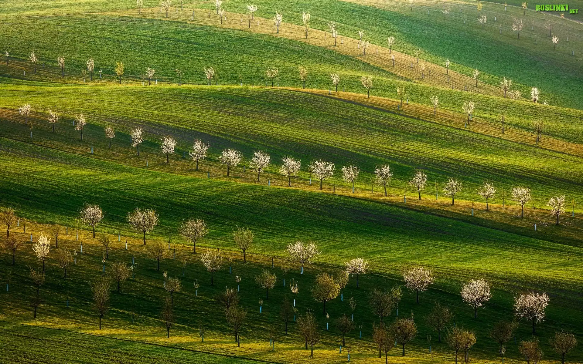 Rośliny: Wzgórza, Pole, Łąka, Drzewa owocowe