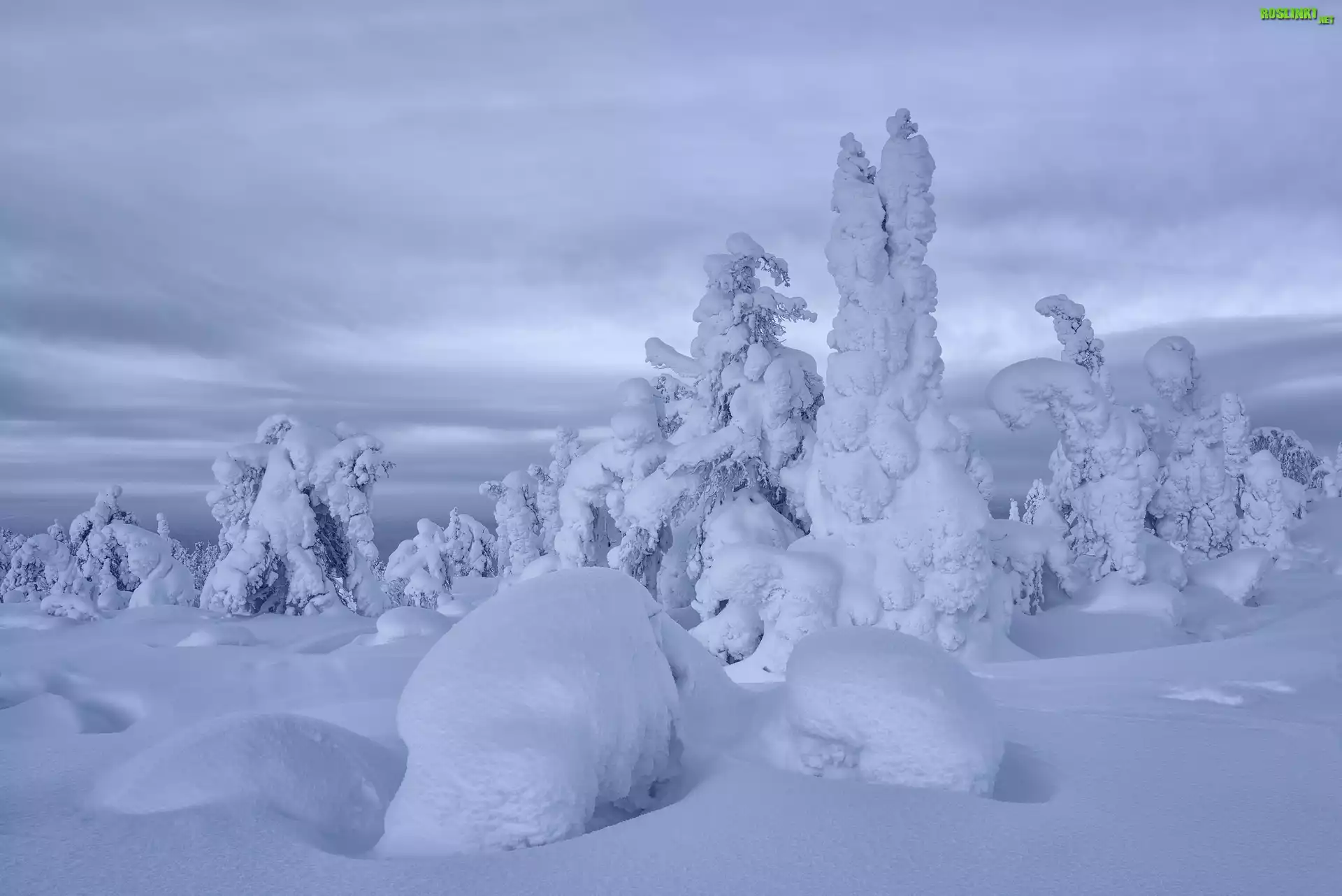 Rośliny: Wzgórza, Ośnieżone, Drzewa, Zima