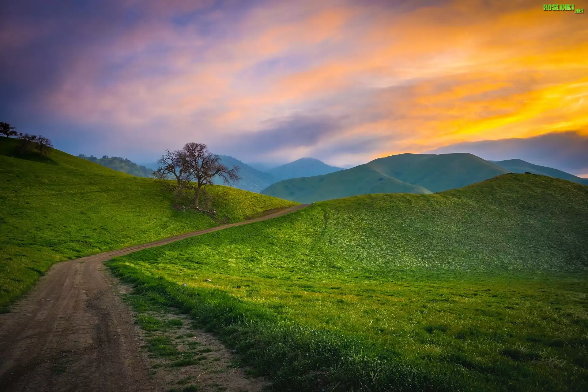 Rośliny: Wzgórza, Łąki, Drzewo, Droga