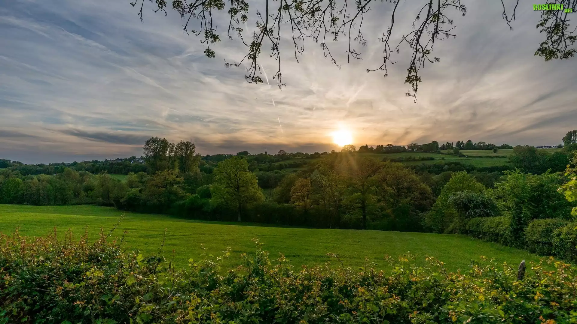 Rośliny: Wzgórza, Drzewa, Promienie słońca