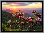 Rośliny: Kwitnący, Różanecznik, Zalesione, Wzgórza, Góry, Zachód słońca
