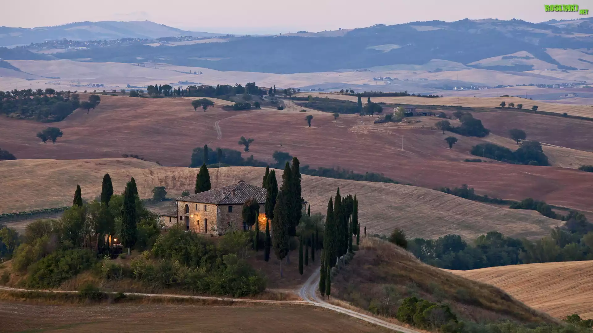 Rośliny: Wzgórze, Dom, Drzewa, Cyprysy, Toskania, Włochy