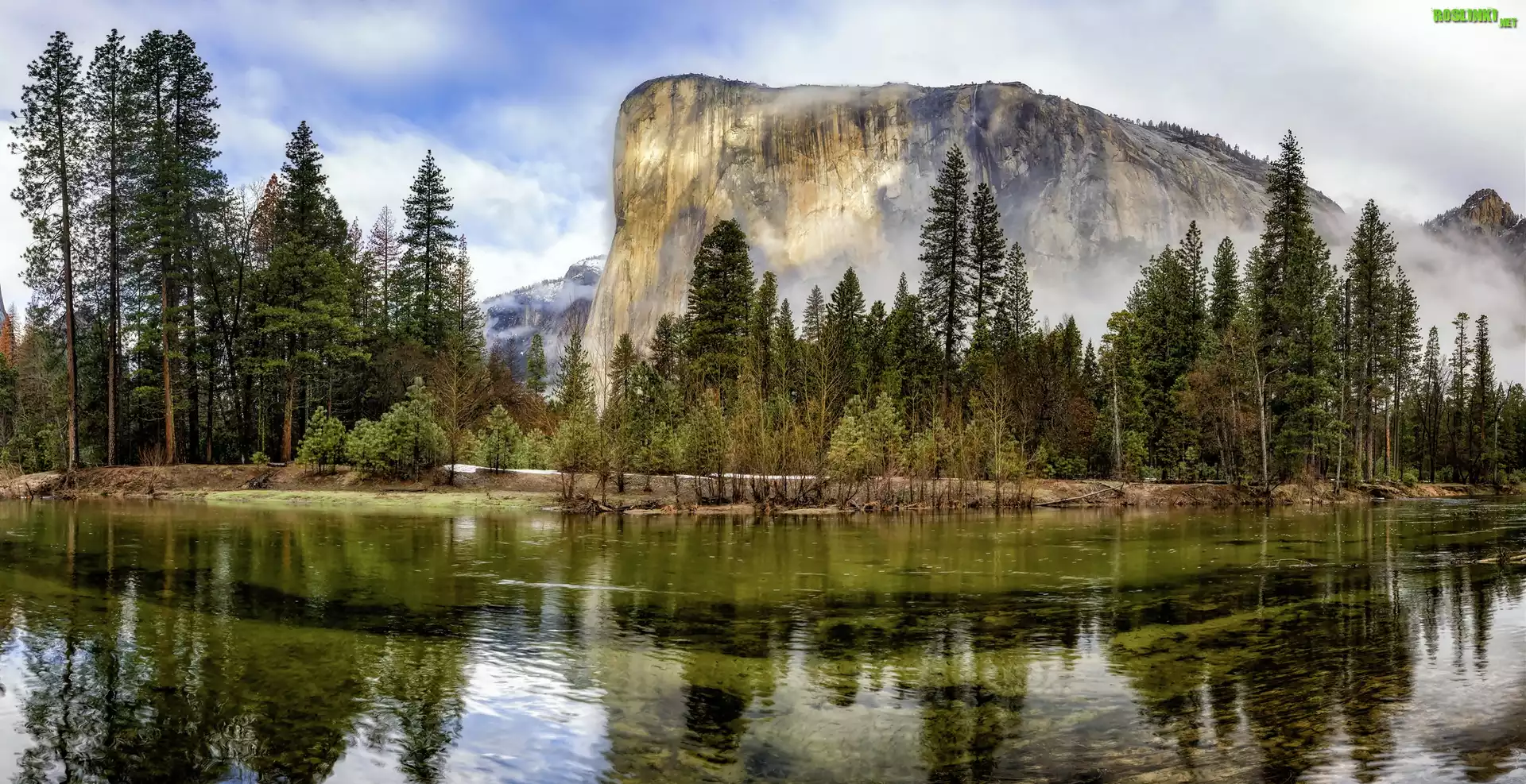 Stany Zjednoczone, Stan Kalifornia, Park Narodowy Yosemite, Dolina Yosemite, Góry, Szczyt El Capitan, Rzeka, Drzewa |