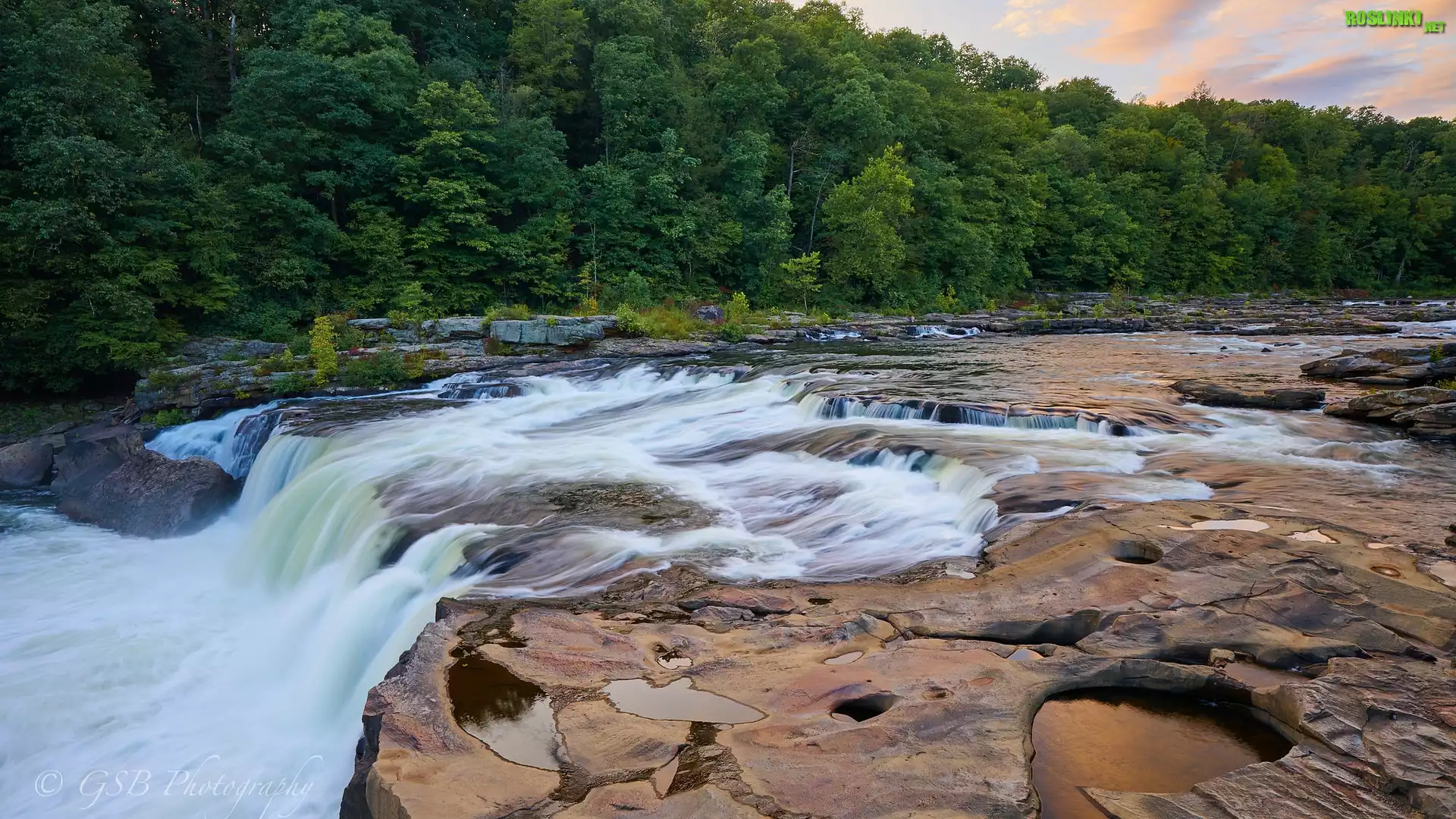 Rośliny: Wodospad, Ohiopyle Falls, Drzewa, Las, Rzeka, Youghiogheny River, Pensylwania, Stany Zjednoczone