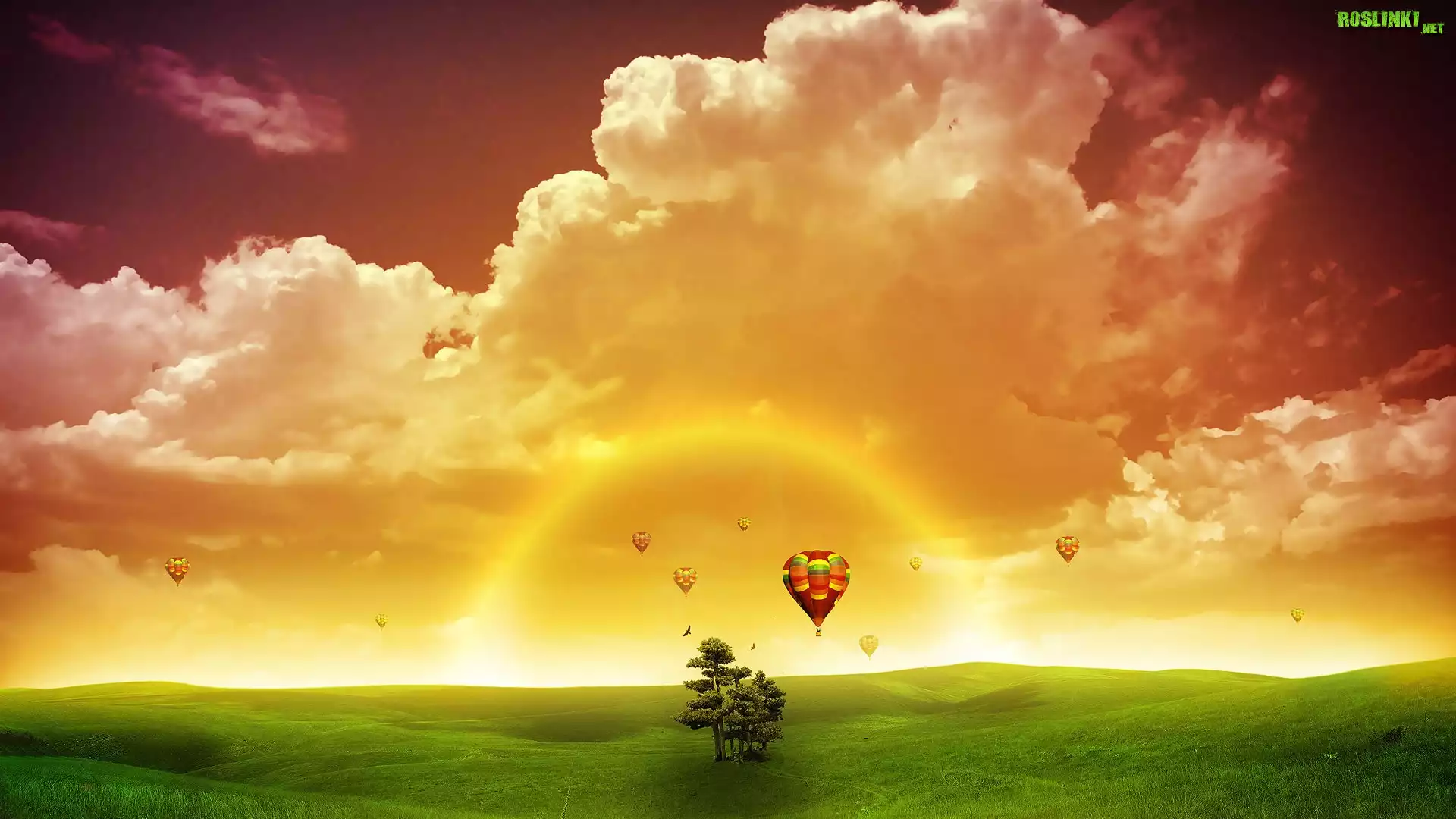 Rośliny: Zachód, Słońca, Chmury, Łąka, Drzewo