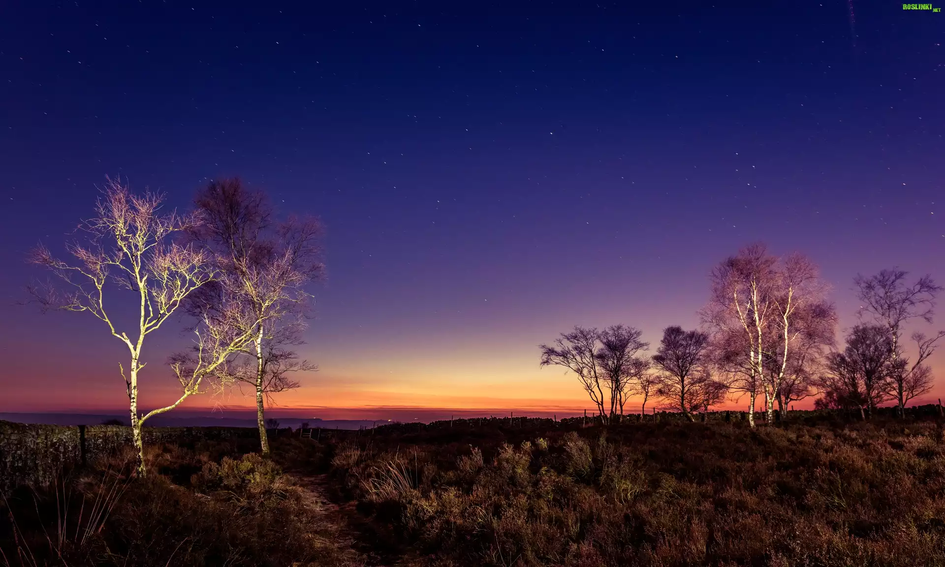 Rośliny: Zachód, Słońca, Łąka, Drzewa