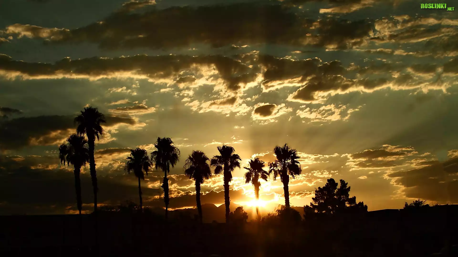 Rośliny: Zachód, Słońca, Niebo, Chmury, Palmy