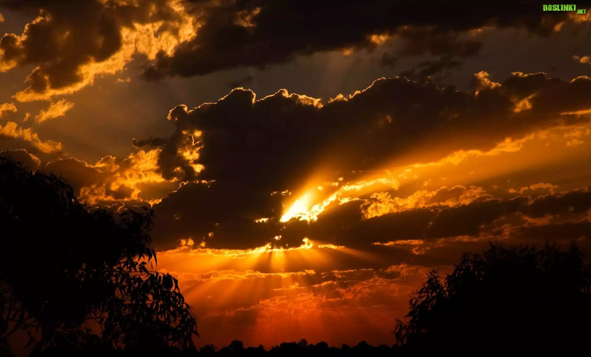 Rośliny: Zachód, Słońca, Chmury, Drzewa