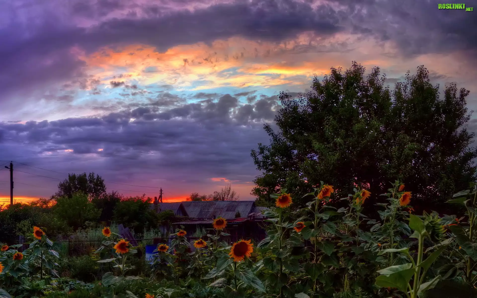 Rośliny: Zachód, Słońca, Chmury, Słoneczniki