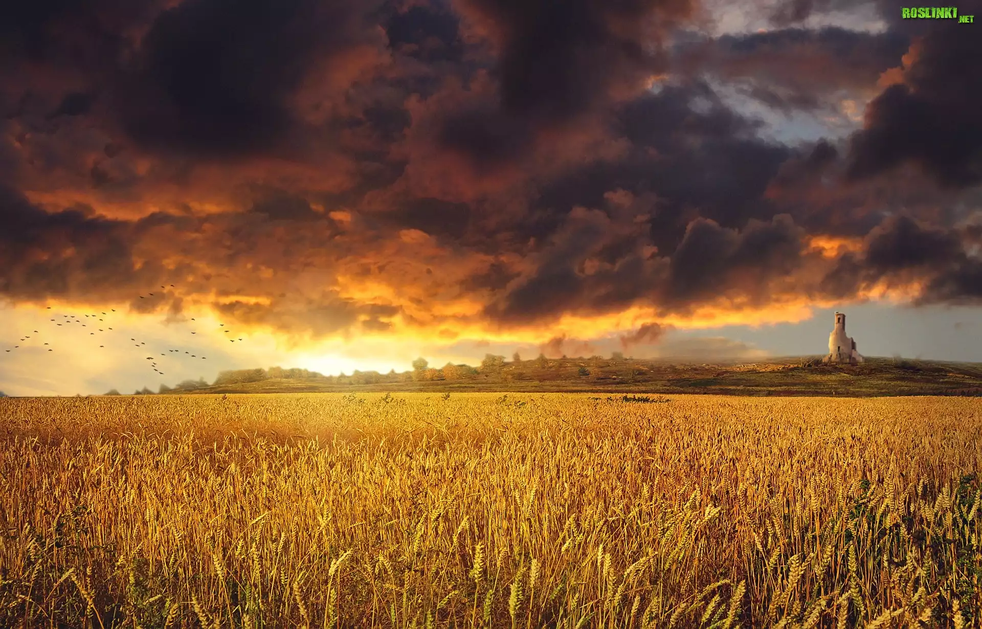Rośliny: Zachód, Słońca, Chmury, Zboża