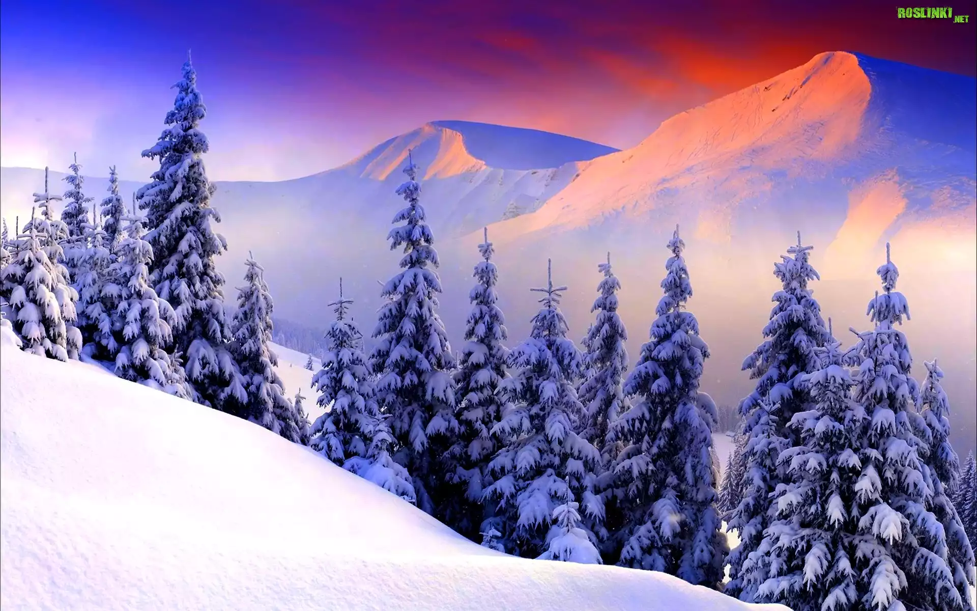Rośliny: Zachód, Słońca, Góry, Drzewa, Zima