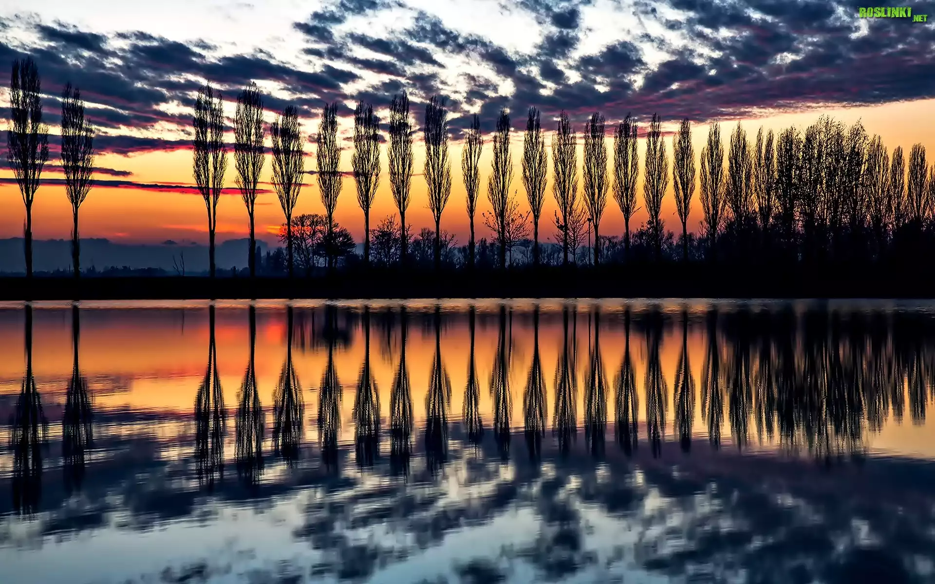 Rośliny: Zachód Słońca, Jezioro, Drzewa, Odbicie