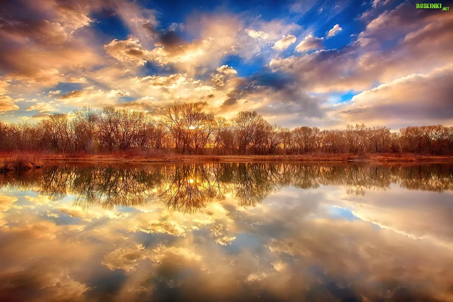 Rośliny: Zachód, Słońca, Jezioro, Drzewa, Odbicie