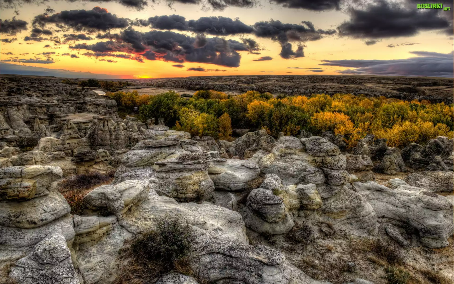 Rośliny: Zachód Słońca, Skały, Drzewa, Chmury