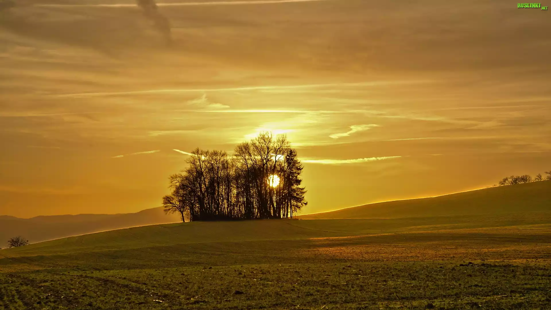 Rośliny: Zachód, Słońca, Drzewa, Łąki