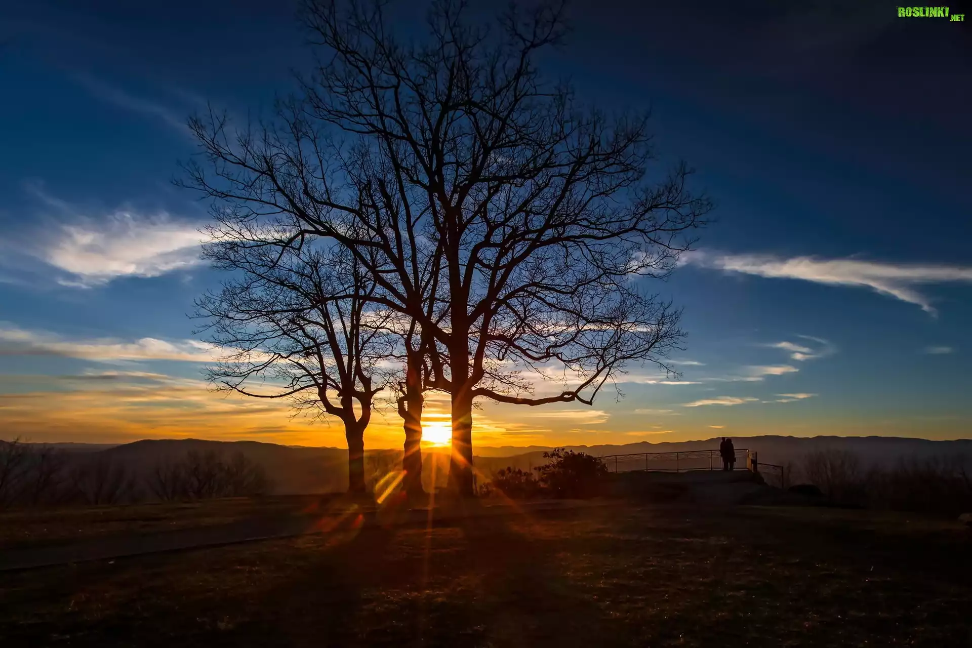 Rośliny: Zachód, Słońca, Drzewa, Ludzie