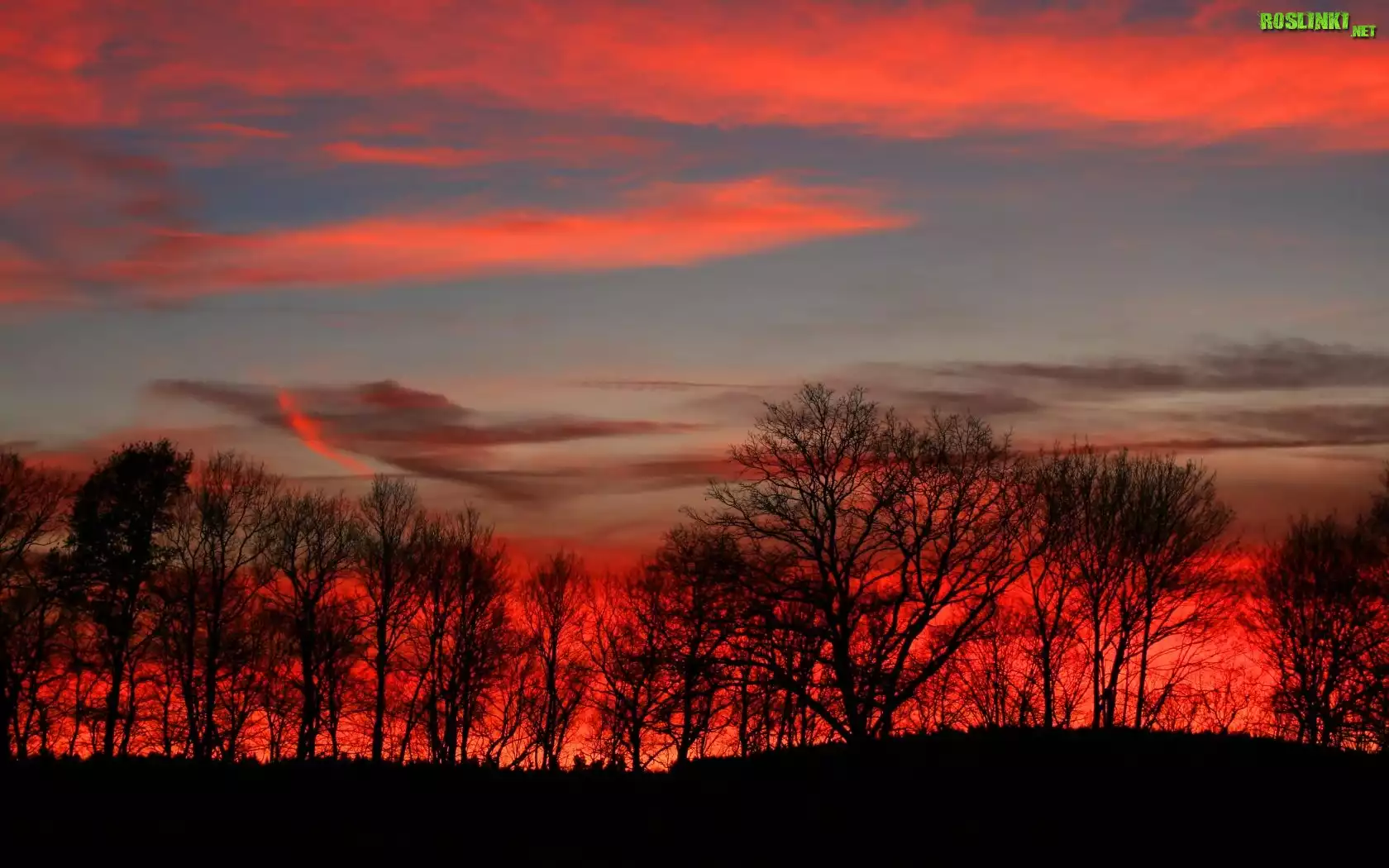 Rośliny: Zachód, Słońca, Drzewa, Niebo