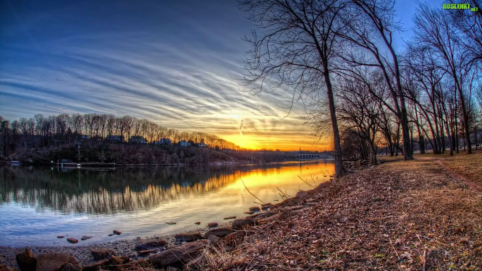 Rośliny: Zachód, Słońca, Drzewa, Rzeka