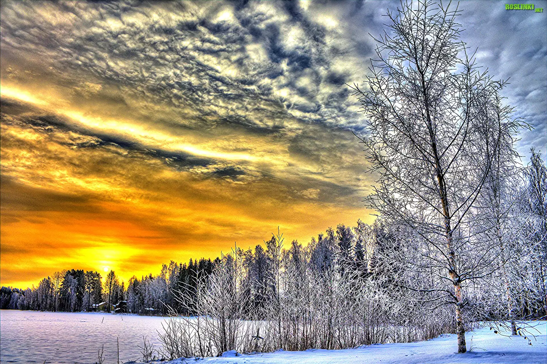 Rośliny: Zachód, Słońca, Drzewa, Zima