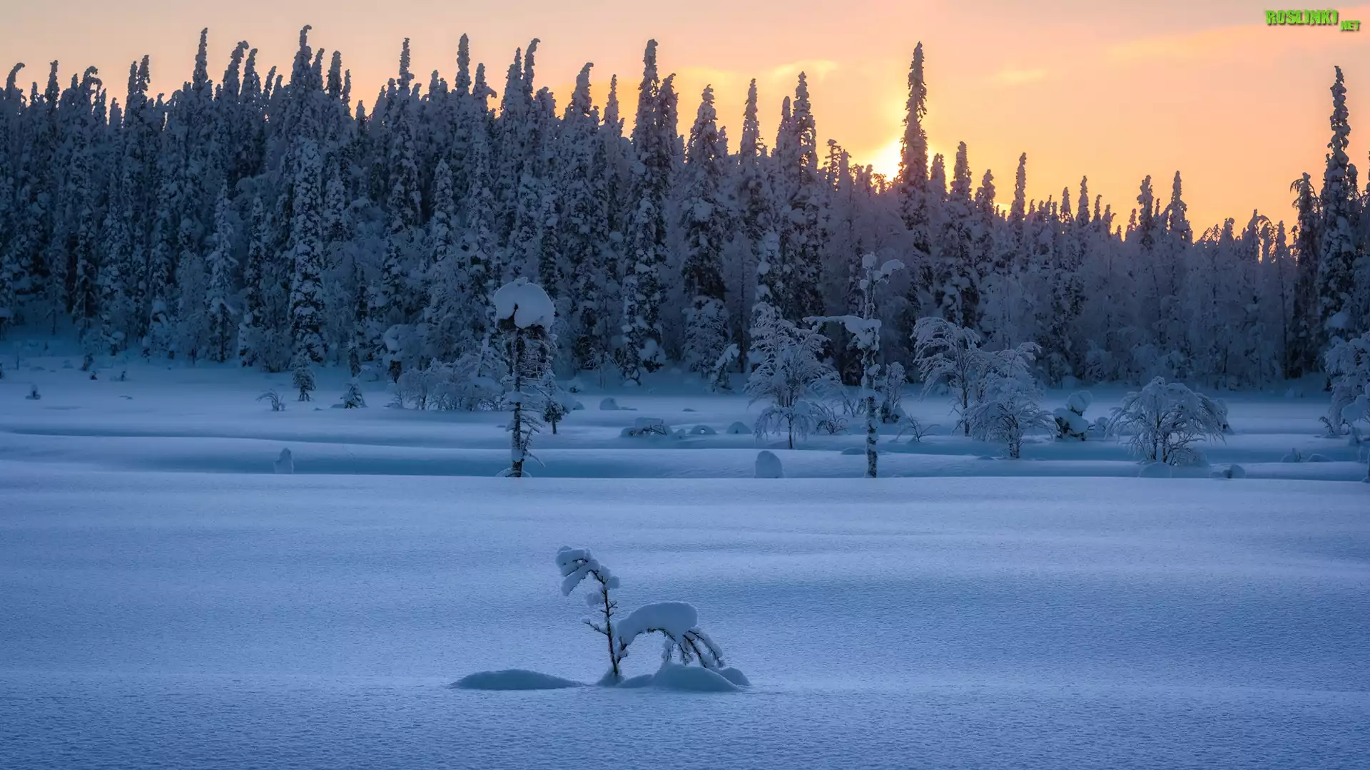 Rośliny: Zachód słońca, Zima, Śnieg, Drzewa, Krzew