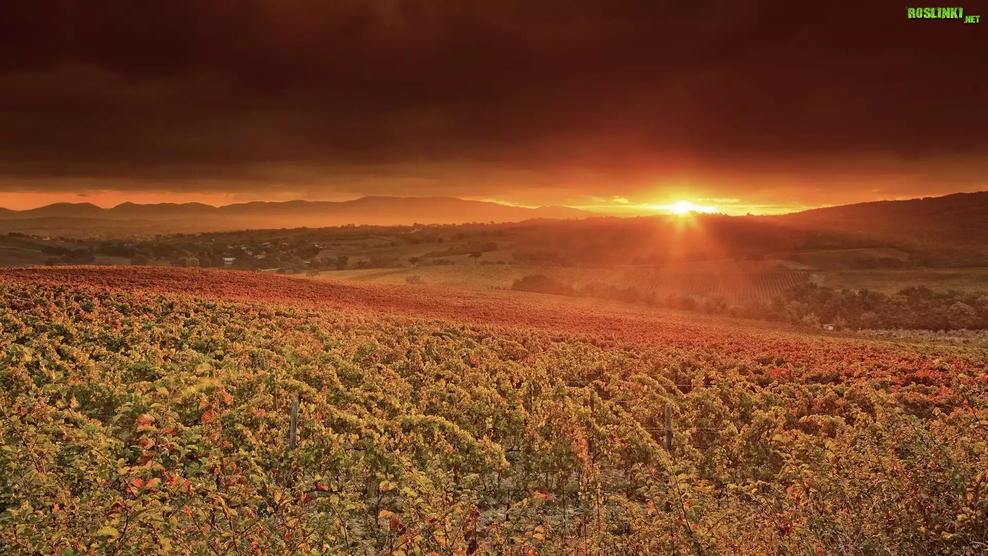 Rośliny: Zachód, Słońca, Góry, Drzewka, Owocowe