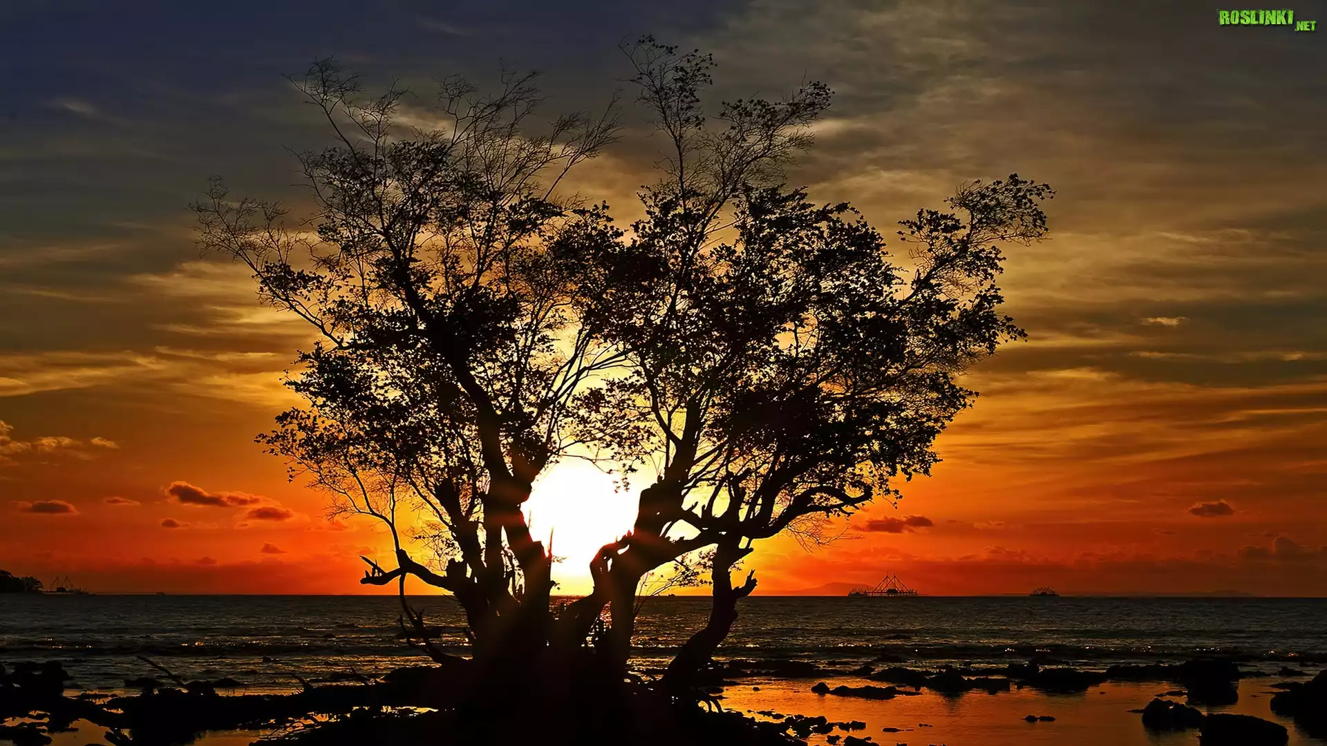 Rośliny: Drzewo, Zachód, Słońca