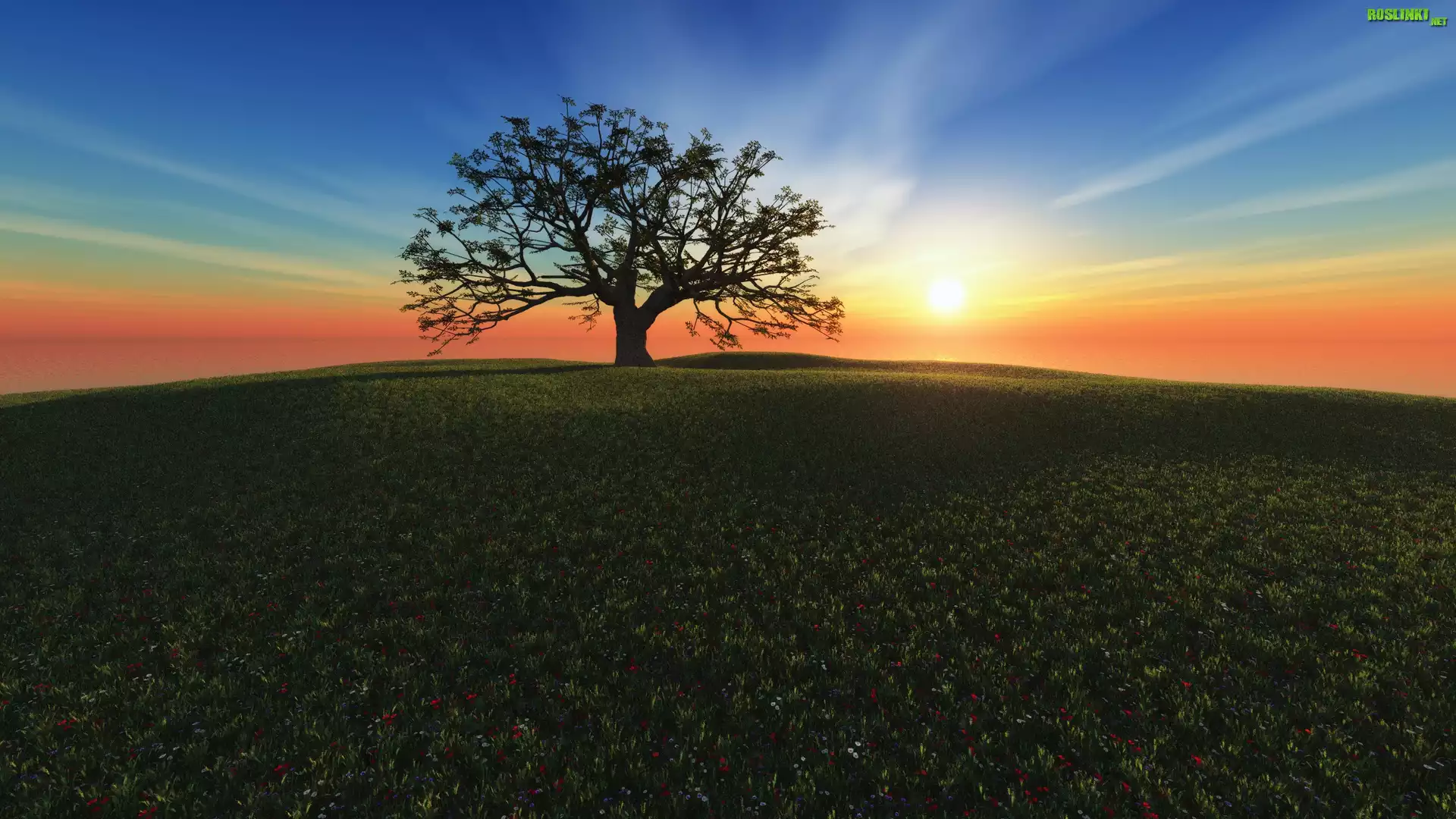 Rośliny: Zachód Słońca, Drzewo, Łąka
