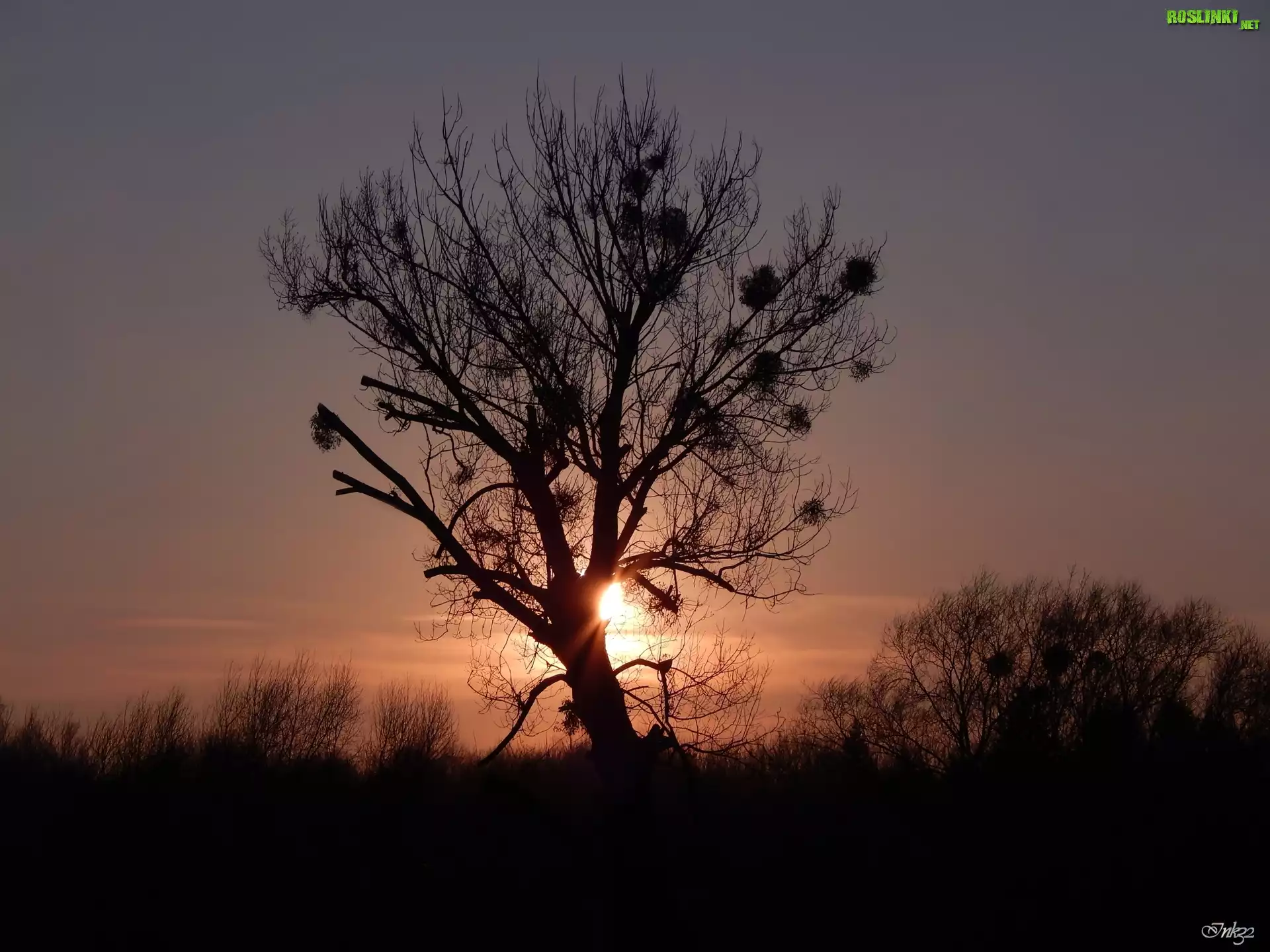 Rośliny: Zachód, Słońca, Drzewo, Jemioła