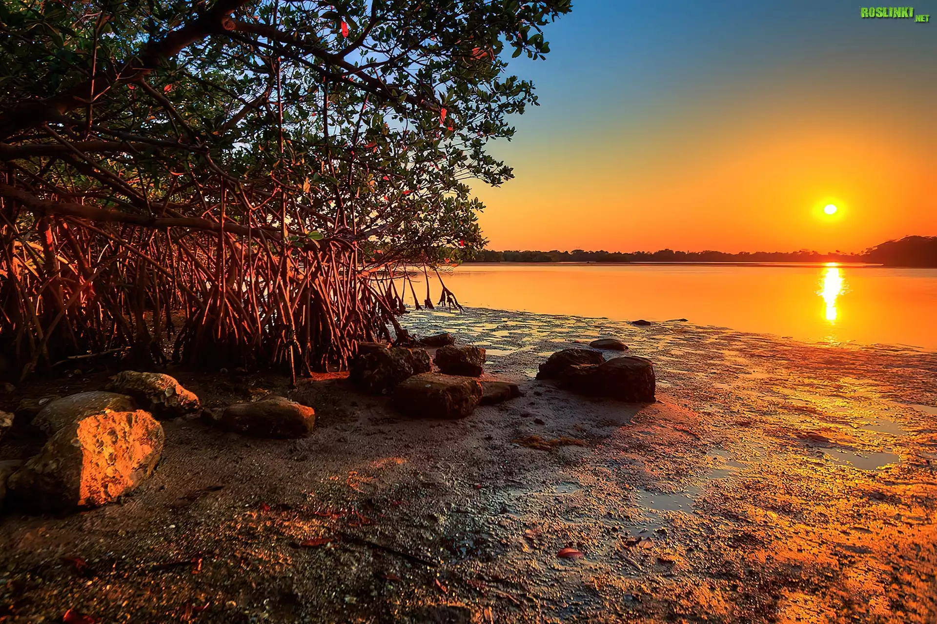 Rośliny: Zachód, Słońca, Drzewo, Jezioro