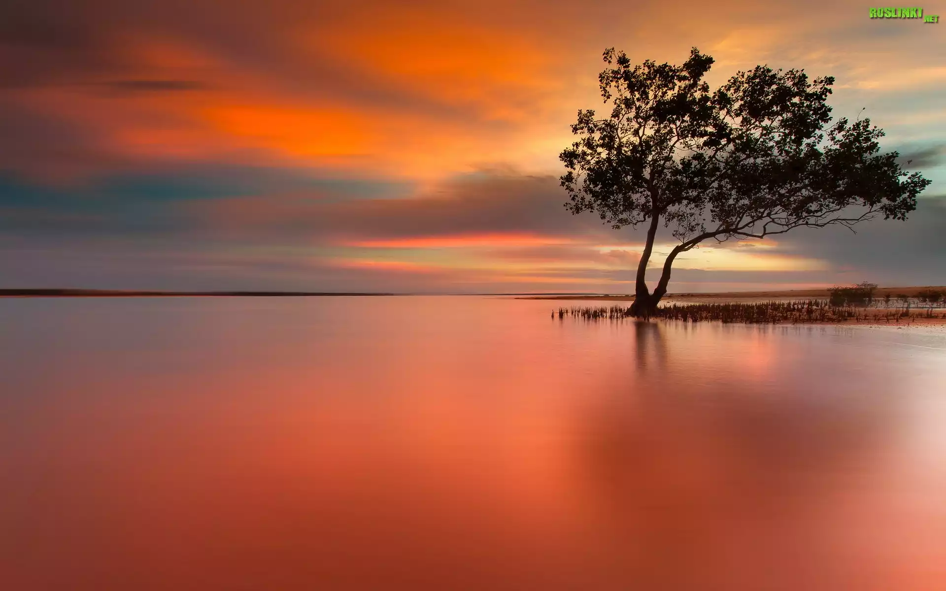 Rośliny: Zachód Słońca, Drzewo, Morze
