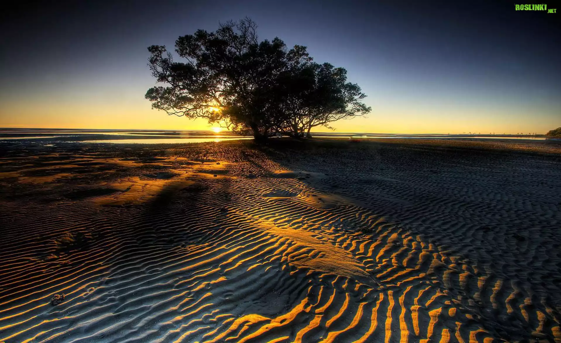 Rośliny: Zachód, Słońca, Drzewo, Piasek