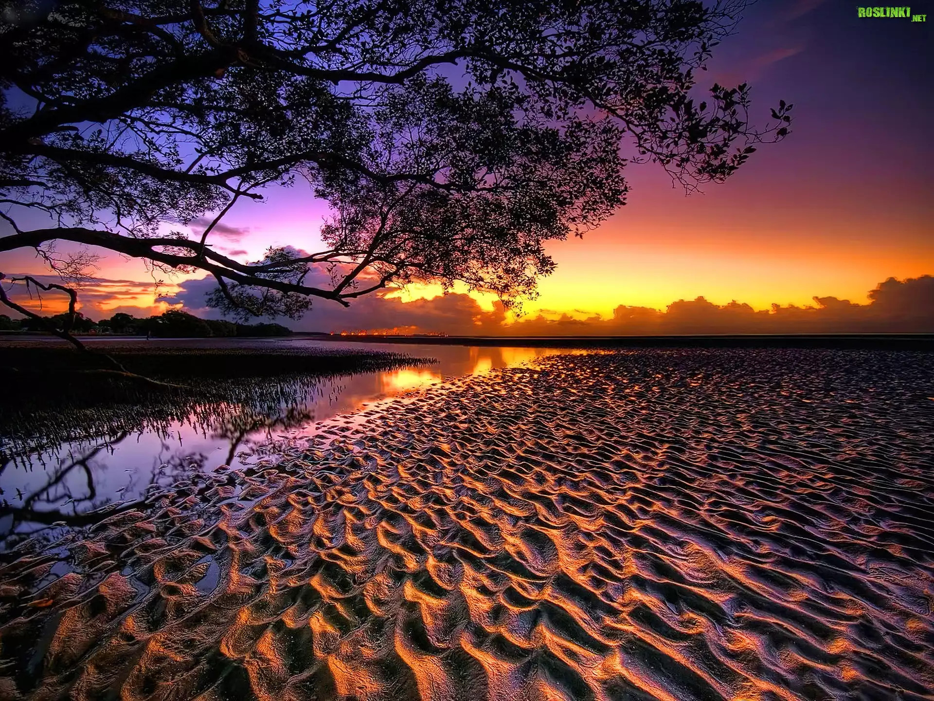 Rośliny: Zachód, Słońca, Drzewo, Plaża