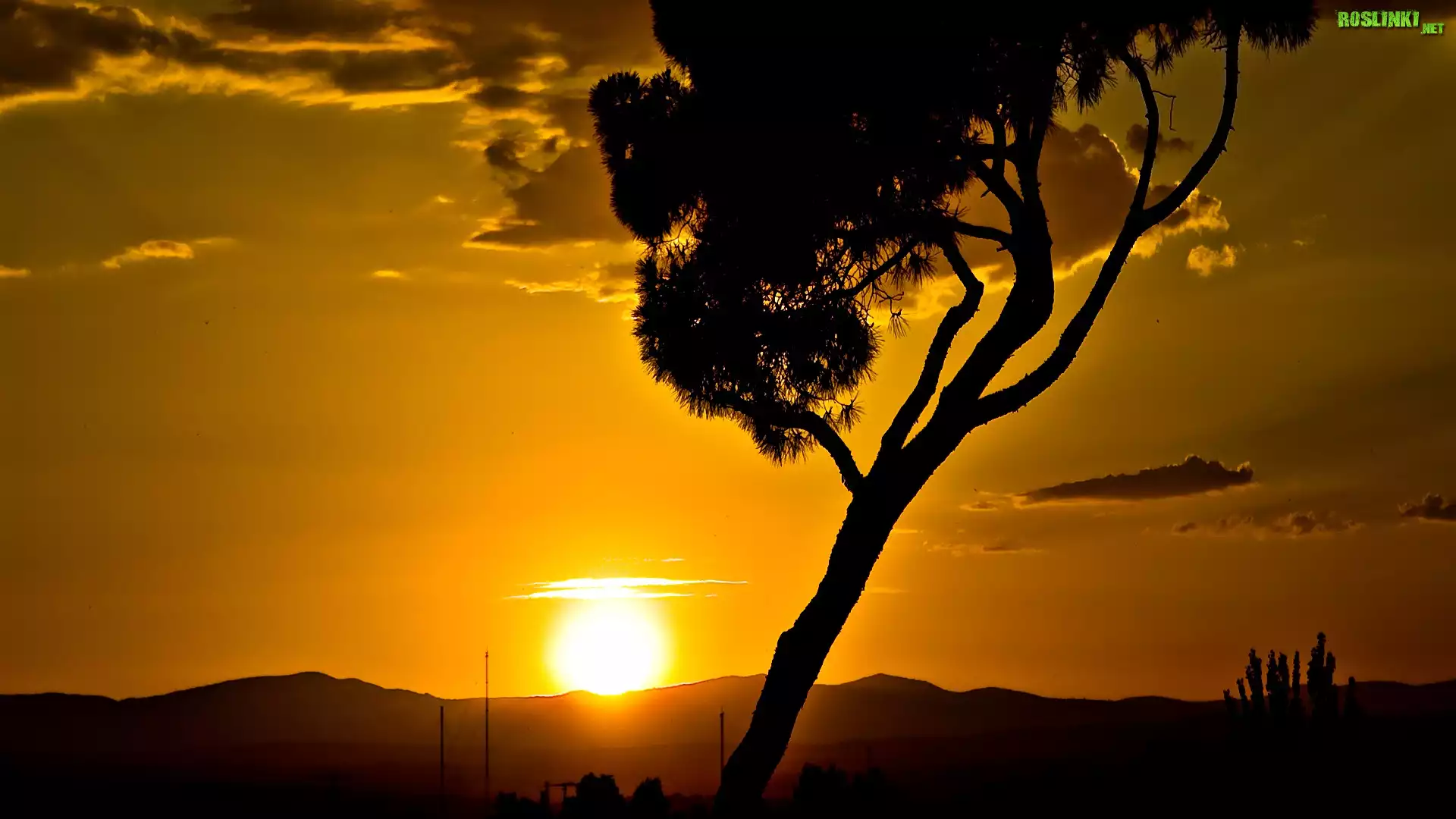 Rośliny: Zachód, Słońca, Drzewo, Sawanna