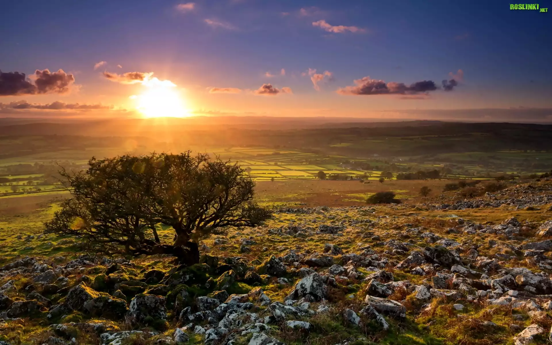 Rośliny: Zachód, Słońca, Drzewo, Skałki