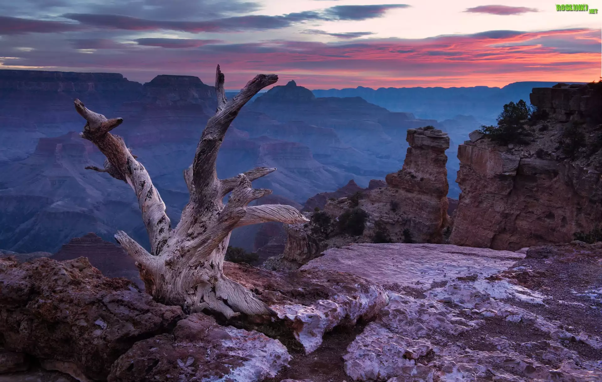 Rośliny: Zachód słońca, Suche, Drzewo, Skały