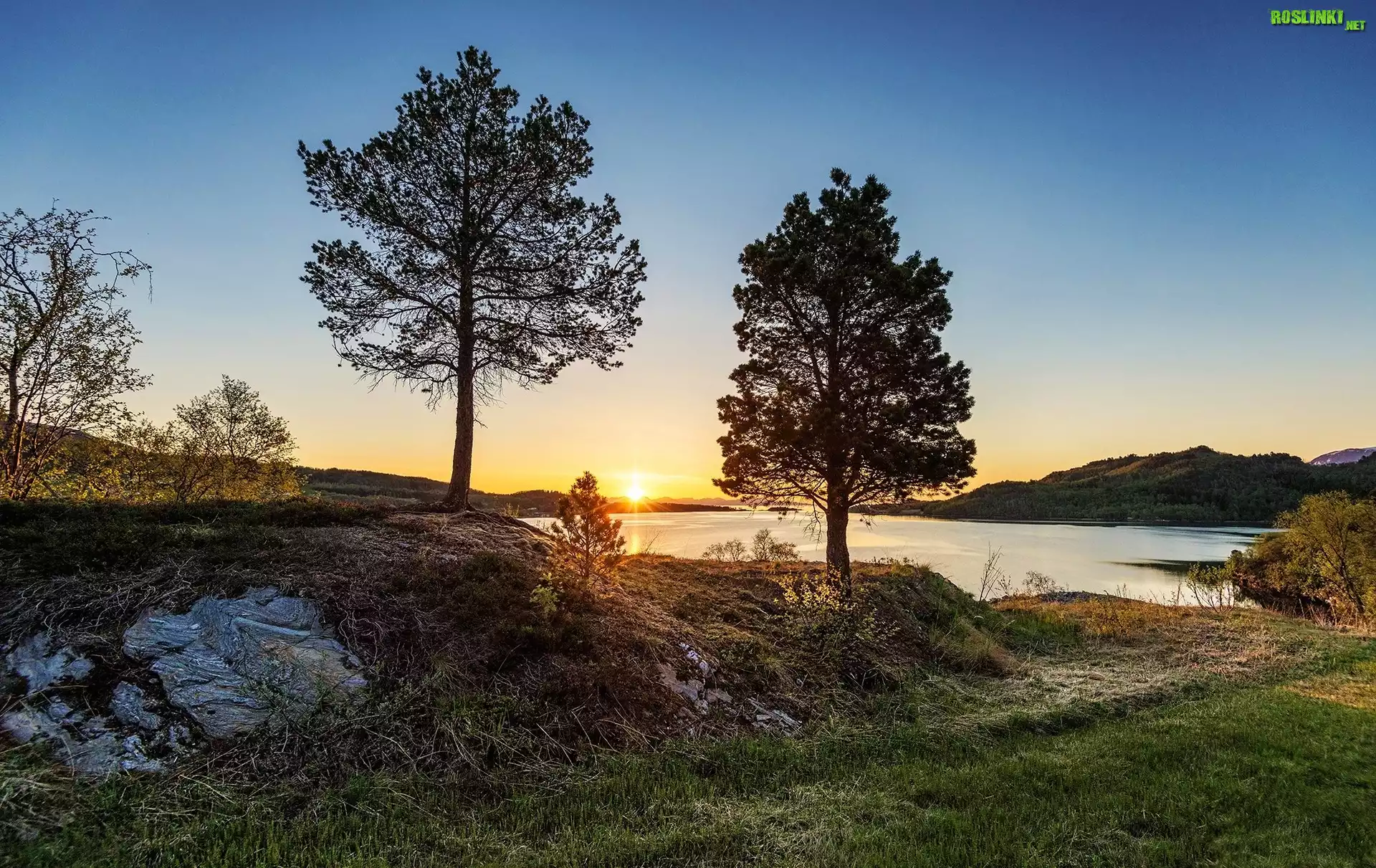 Rośliny: Zachód, Słońca, Dwa, Drzewa