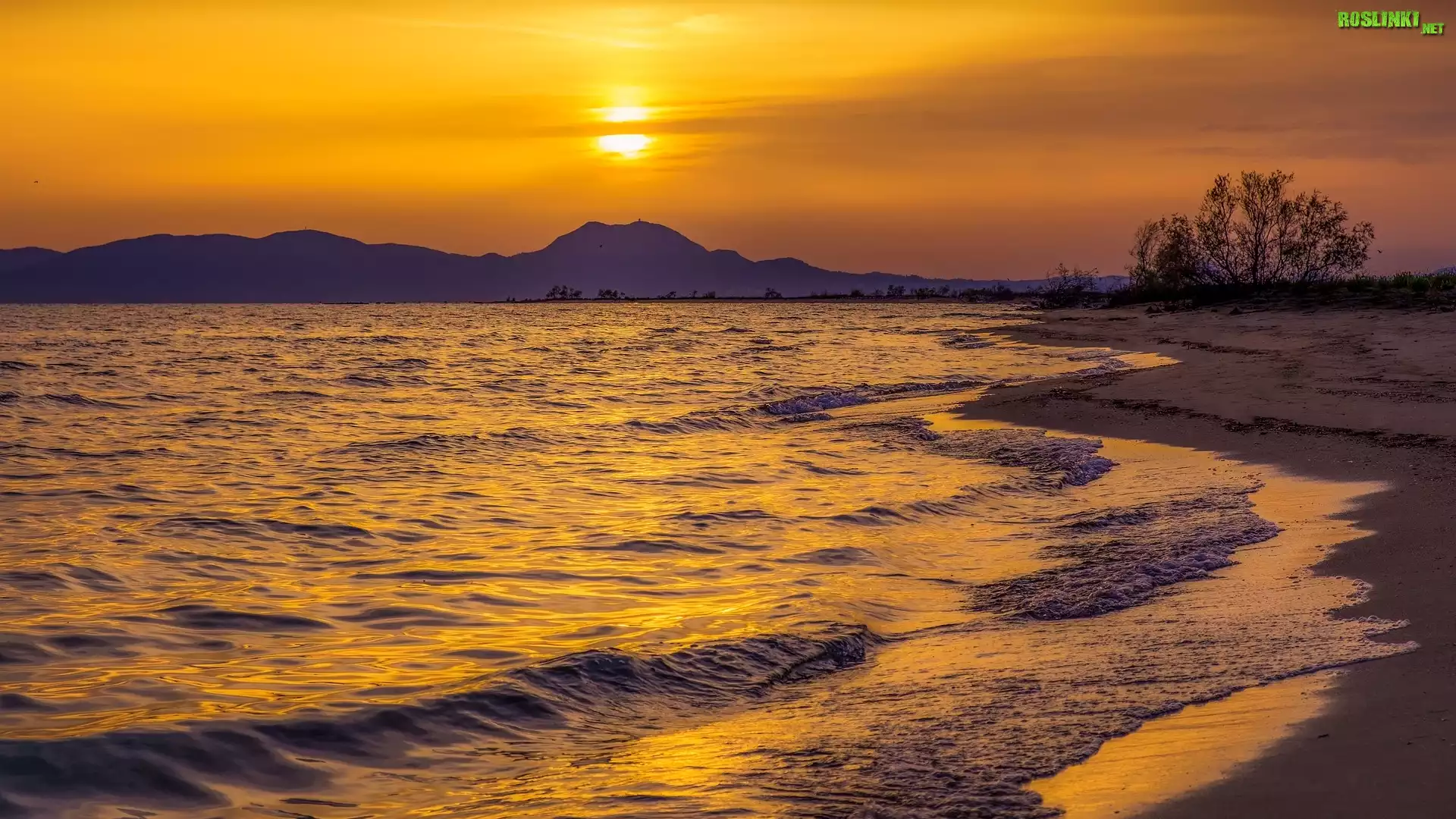 Rośliny: Zachód słońca, Morze, Góry, Drzewo
